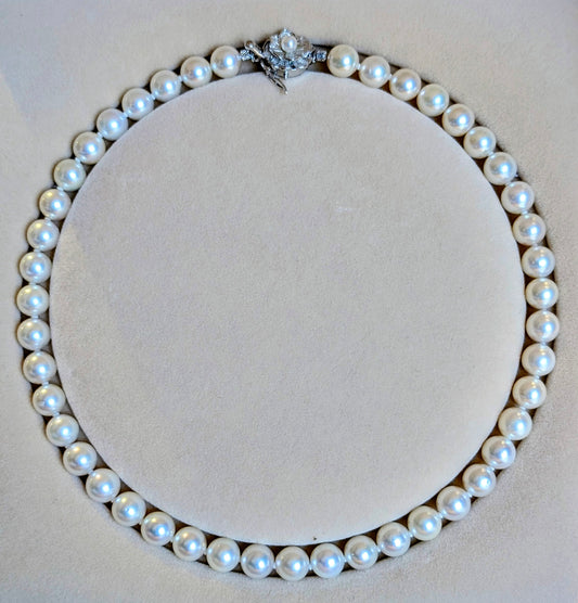 Classic Akoya Pearl Necklace with Floral Diamond Clasp