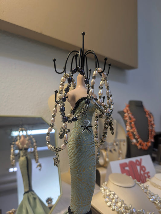 Elegant Black Pearl Jewelry Set – Necklace, Earrings & Ring in Timeless Harmony