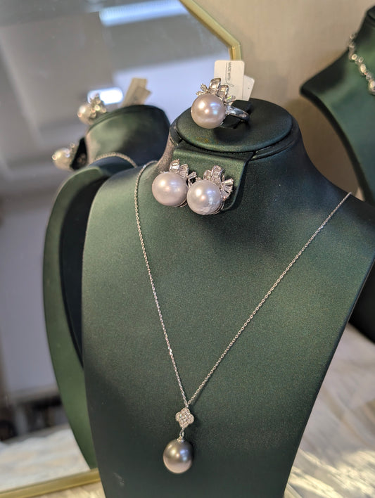 South Sea Silver Pearl Jewelry Set (Necklace, Earrings & Ring
